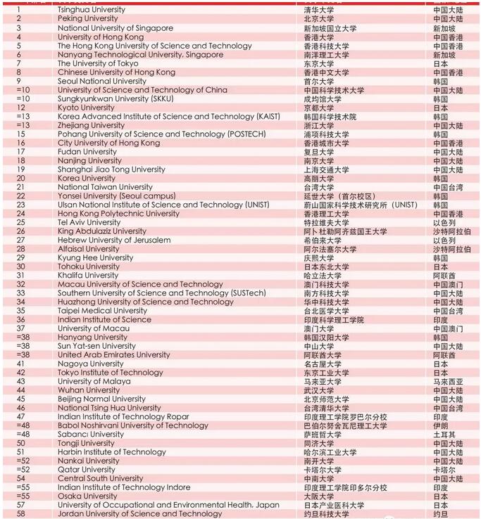 泰晤士高等教育(Times Higher Education)于6月3日发布2020亚洲大学排名。本次排名共包含亚洲30个国家和地区的489所院校。 榜单内,中国大陆院校共81所,日本110所院校,印度院校56所,为... 详情>>