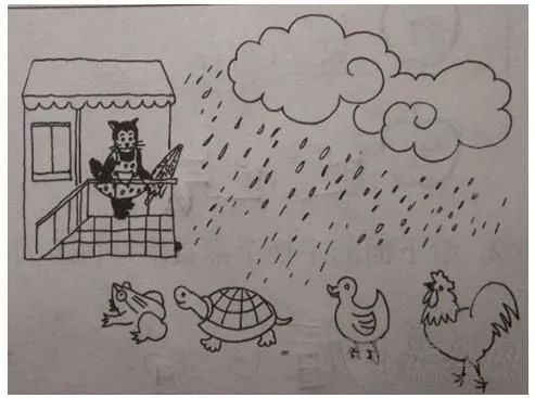 图中动物有青蛙、乌龟、鸭子、大公鸡和小花猫 范文 一天,青蛙、乌龟、鸭子和大公鸡准备到好朋友小山羊的家里去做客。忽然,天上乌云密布,马上就下起了倾盆大雨。小动物们只[查看详情]