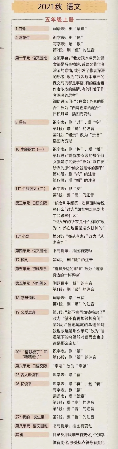 2021秋新学期小学语文部编版教材信息变动-二上[查看详情]