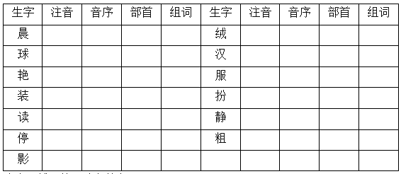 朗读 1、本课共( )自然段。 2、默读两遍,朗读三遍,读通、读顺课文。 家长签字: 生字新词 3、给下列生字注音、组词。 注意绒的写法和笔顺 相关资料 4、我国有 个民族,是一个[查看详情]