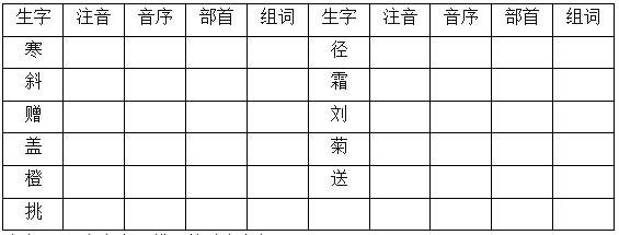 朗读 1.默读两遍,朗读三遍,背诵古诗。 家长签字: 生字新词 2、给下列生字注音、组词。 注意(1)多音字挑的读音和组词。 (2)寒、斜的写法和笔顺 相关资料 3、《山行》的作者[查看详情]