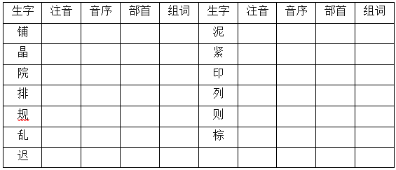 朗读 1、本课共( )自然段。 2、默读两遍,朗读三遍,读通、读顺课文。 家长签字: 生字新词 3、给下列生字注音、组词。 注意(1)多音字晶、印、排的读音和组词。 (2)寒、斜的[查看详情]