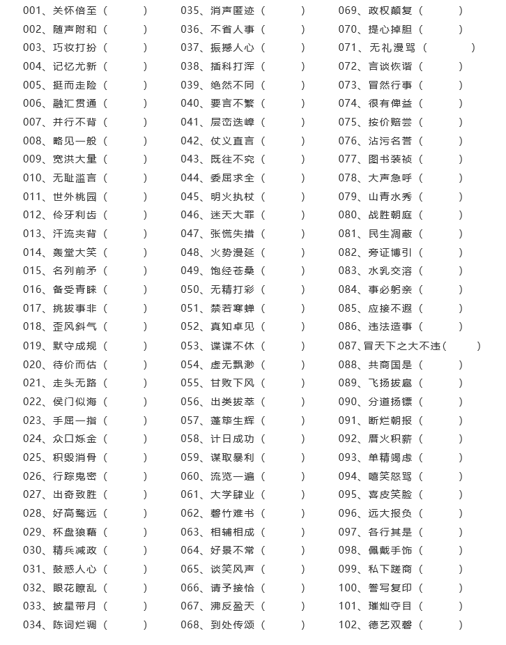 001.爱带(戴) 335.雷历风行(厉) 669.庸庸录录(碌) 002.白晰(皙) 336.礼上往来(尚) 670.心心相应(印) 003.爆乱(暴) 337.理曲词穷(屈) 671.影影约约(隐) 004.报筹(酬) 338.立···详情>>
