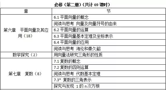 必修第二册的内容也融合了原先人教A版中必修四的向量部分、必修二的立体几何初步以及必修三的统计与概率部分,同时还加入了原先在选修出现的复数部分,从新教材的内容可以看出,原先三视图以及程序框图部分已经彻底删掉,现在只是给大家介绍直观图的概念。