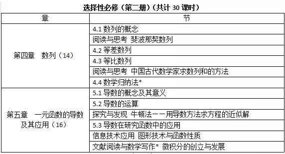 选修第二册内容相对少一些,只有两章,所对应的内容是数列与导数的相关知识,这一改革还是很重大的,将原本必修五的数列部分直接划入选修模块,并且和导数合并为一册。将原先选修中的数学归纳法证明也合并到数列模块中。