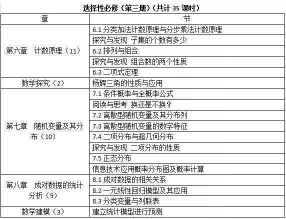 选修最后一册主要内容是计数原理与概率,还有一小部分是线性回归方程,其实总体的要求是想让学生学会如何进行数据处理,在之前一直宣传的数学建模,也在选择性必修第三册中出现,说明改革之后的教学内容,更加注重培养学生数学应用方面的能力。
