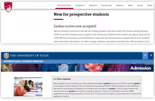 塔尔萨大学、丹佛大学同样表示,保留要求申请人进一步提供相关材料的权利,最早的也是2019年秋季学期入学,每一位学生的申请结果均由学校来决定。