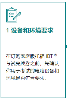 1. 确认你用于考试的电脑设备和环境符合设备和环境要求,这一点非常重要!如果你在考试日当天不满足这些要求,则无法参加考试,且无法申请退款及转考。(具体要求可参考托福在家考中文版官网)