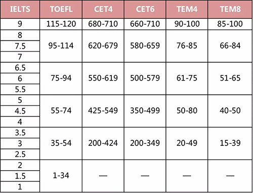 • 你的四六级成绩,相当于雅思托福多少分呢? 日期:2019-08-26 09:44:24 点击:74 好评:0