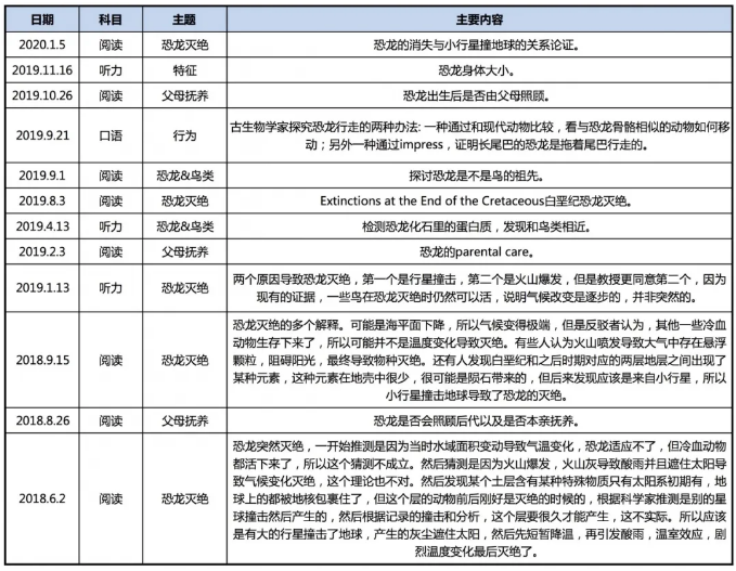 恐龙经常出没在近几年的托福考题中。恐龙话题下,考察的主题最主要为恐龙灭绝的原因。猛犸象同样作为已灭绝的动物经常被考到,同样考察灭绝原因。因此,在复习中可以重点科普...
