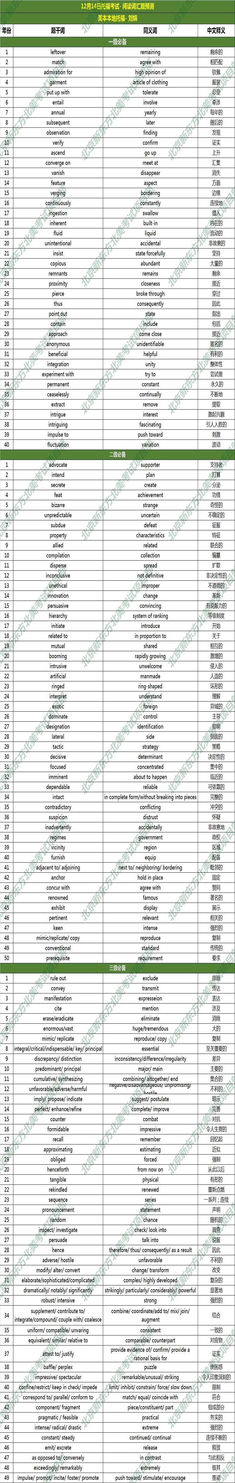 词汇预测现身 S1-S4分级背诵 助你一手掌握 当周考试重点词汇! 12月14日托福考试—词汇预测...