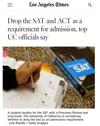 一周前,洛杉矶时报报道,加州大学高级官员表示,支持取消SAT和ACT成绩作为入学条件。 加州大学伯克利分校和加州大学圣克鲁斯分校的校长,以及加州大学的首席学术官表示,他们支...