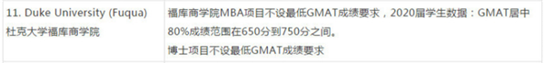 2019杜克大学福库商学院GMAT成绩要求