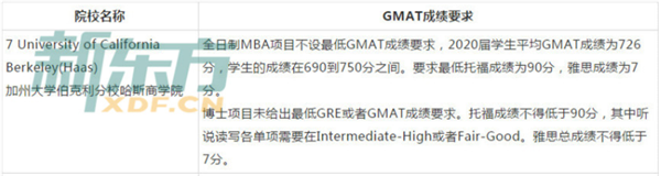 2019加州大学伯克利分校哈斯商学院GMAT成绩要求