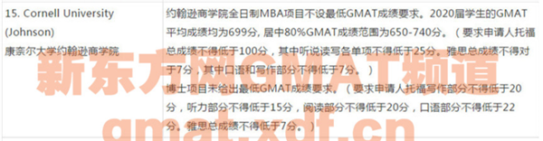 2019康奈尔大学约翰逊商学院GMAT成绩要求