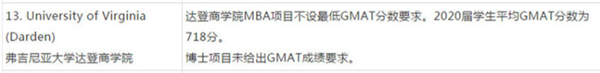2019弗吉尼亚大学达登商学院GMAT成绩要求