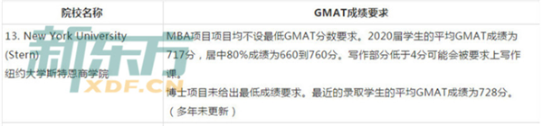 2019纽约大学斯特恩商学院GMAT成绩要求