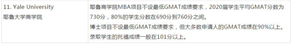 2019耶鲁大学商学院GMAT成绩要求