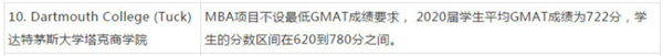 2019达特茅斯大学塔克商学院GMAT成绩要求