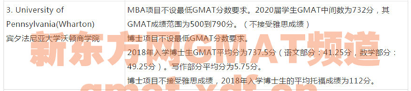 2019宾夕法尼亚大学沃顿商学院GMAT成绩要求