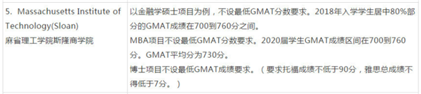 2019麻省理工学院斯隆商学院GMAT成绩要求