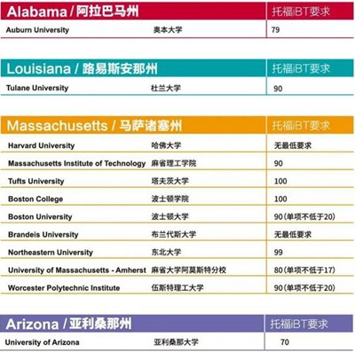 ETS官方盘点美国院校托福分数地图 近日,ETS官方盘点了全球热门留学目的地托福分数地图,美国院校录取地图如下:...