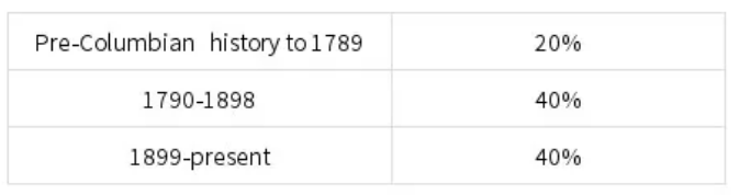 SAT2美国历史考试形式十分简单。一个小时完成90道选择题目,每道题有5个选项,答对一道一分,答错一道倒扣0.25分。 题目类型包含:事实题,趋势题,排除题,材料题。各占比重30%,...