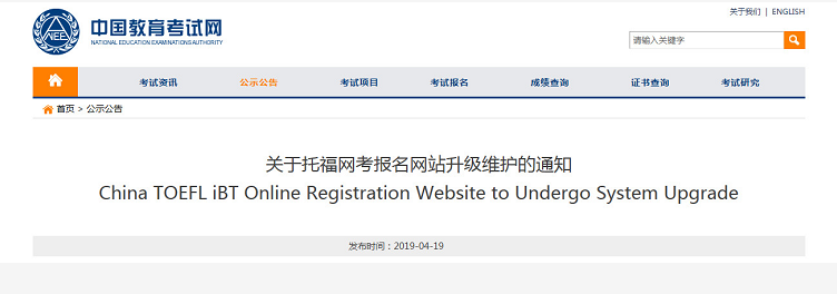 ETS重要通知:4月13、14日考试将提前出分,托福网考报名网站升级维护