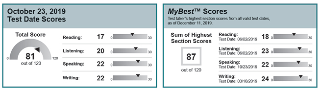 ETS近日正式官方宣布:托福考试将于2019年8月起提供MyBest scores分数报告服务。 MyBest scores,也可称作托福拼分。ETS将会列出学生过去两年以来,托福考试听、说、读、写的单项最高分,...