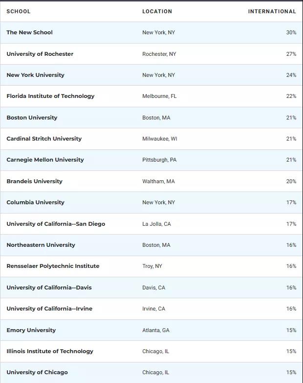 近期,U.S.News 统计了美国近千所大学,最终根据学校的种类列出了国际生占比最高的美国大学,具体如下:... >>查看详情