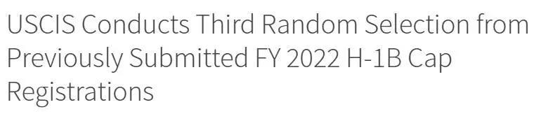 美东时间11月19日上午,美国移民局(USCIS)发布消息称,截至目前2022财年H1B第三轮抽签已经完成,被抽中的申请人最早可以在2021年11月22日递交申请材料给移民局,最晚不应超过2022年2月... >>查看详情