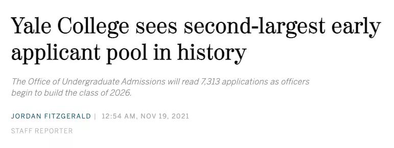 美国当地时间11月19日,耶鲁大学在《Yale Daily News》上公布了Class of 2026早申请(REA)数据:今年早申期间共收到了 7,313 份申请,比去年下降8%,相比2019年增长了27%。今年早申申请人数虽... >>查看详情