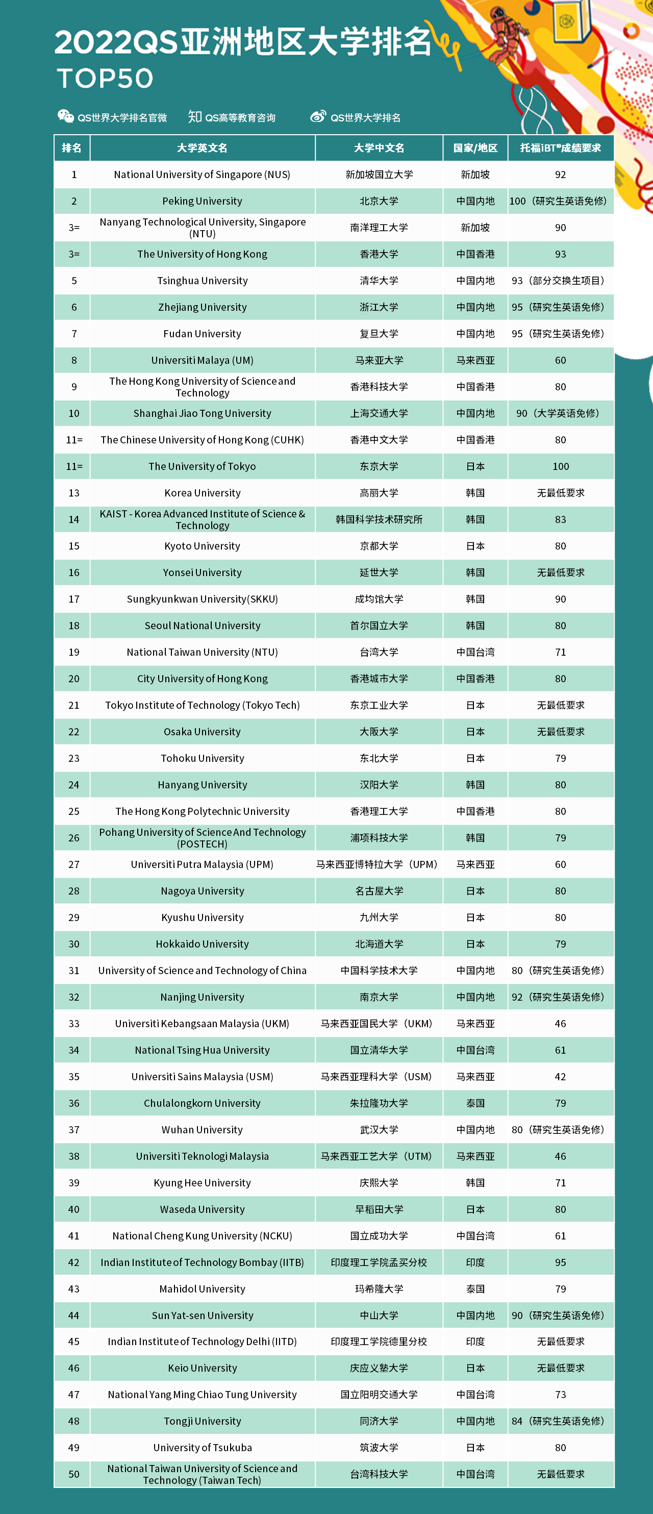 世界高等教育研究机构 QS Quacquarelli Symonds 于上周发布了最新 2022 QS 亚洲地区大学排名。2022 年的 QS 亚洲大学排名共有 687 所院校上榜,是迄今为止规模最大的排名。本次排名基于 11 项评... >>查看详情