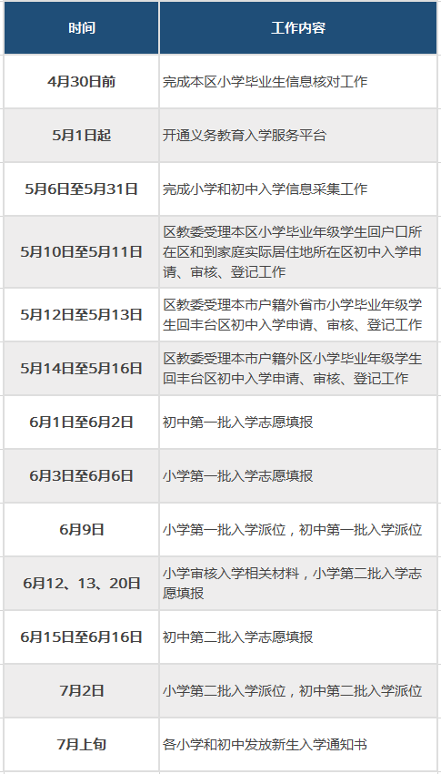 2021年丰台区义务教育阶段入学工作时间表如下:[查看详情]