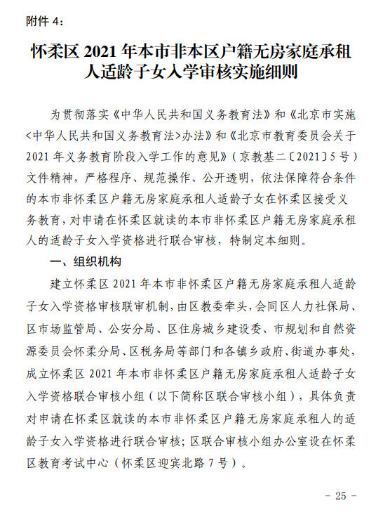 2021年怀柔区本市户籍无房家庭承租人适龄子女入学审核实施细则[查看详情]