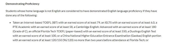 佛罗里达理工学院 2021USNews排名:206 国际生比例:24% 本科生总人数:3,565 语言要求: 佛罗里达理工接受国际生的托福IBT、雅思、PTE、多邻国以及剑桥英语的考试成绩。并且中国学生的... >>查看详情